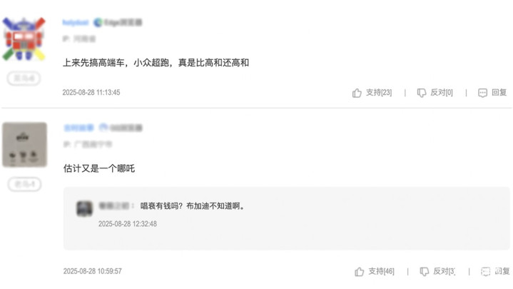 还有网友称追觅造车开局就搞高端车,打造小众超跑是哪吒汽车的翻版,比高合还高合。
